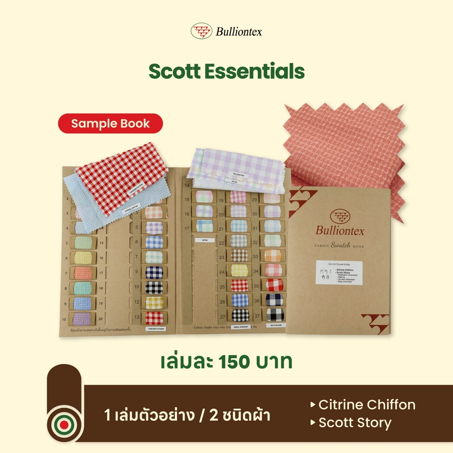 One book will contain 2 types of fabric, which are